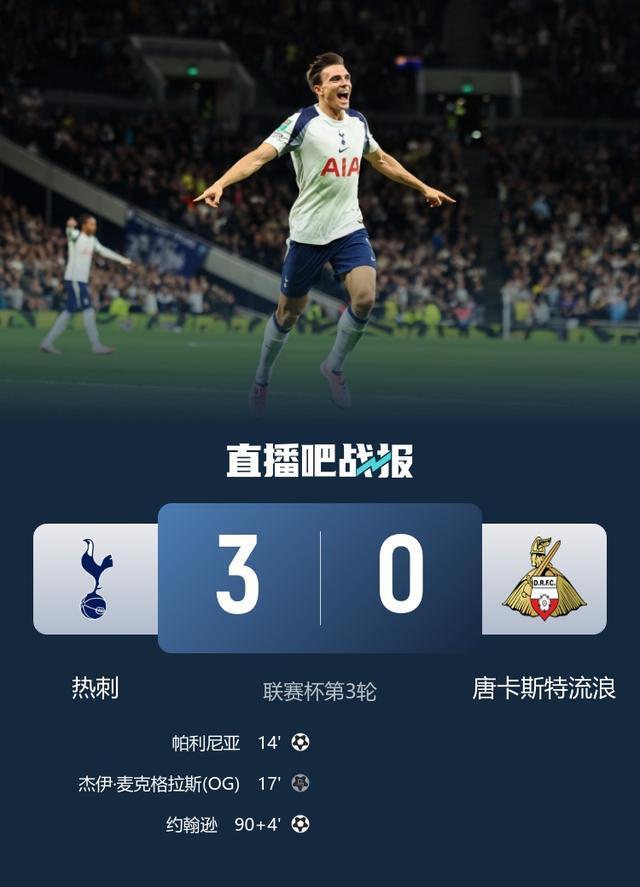 seemitióenvivo a las 2:45 am el 25 de septiembre,con el tottingham hotspur vs doncaster deambulando en la la la la la tercera ronda de la la copa de la Liga。在上半场,帕里纳(Parina)用巴尔(Barr)进球!奥德贝尔变得顺从。在下半年,没有任何零件取得任何结果。最后,托特纳姆热刺以3-0击败唐卡斯特,晋级英国联赛杯的下一轮! [Eventos Extivestes del Juego] En El Minuto 14,La Oportunidad de Patear La Esquina Izquierda del Tottingham Hotspur,âXavi Simmons dio dio un dion y volviour yvolvióloslos ojos a la meta!守门员击球,但无法及时回到位置!帕里纳用她的下巴敲了空的门! TottenhamhilóA doncaster 1-0↓17ºMinuto,Odbel seRompióal obtener elbalóndela Izquierda,Entrar en el el el al al al alenalizacióny despejar y despejar y despejar el gol el gol el gol despede la izquierda。麦格拉思不小心得分!托特纳姆热刺队以2-0↓[在派对进场时],Xavi Simmons将球传给了THE离开了两分钟,斯宾塞(Spencer)十字架并在第三分钟抓住了球。在第28分钟,Xavi Simmons从右侧踢了一个角球,而Bentancur将球指向球门!球失去了左柱,在31分钟内,托特纳姆热刺的热刺将球从罚球区的左侧传递到左侧,而奥德贝尔则击球。在85分钟内,杆进入了罚球区的右侧,并在即将倒下时跌落到了地面上。法官将杆惩罚为虚假秋天,黄牌↓