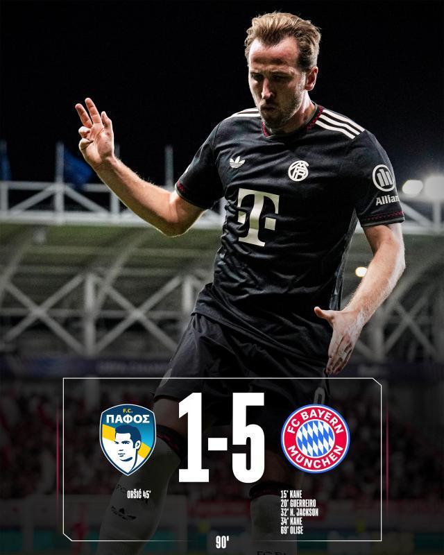 体育周刊原创帕普斯1-5拜仁慕尼黑45'Orthic/15'凯恩,20'拉斐尔·格雷罗,32'Nicholas Jackson,34'Kane,69'Ollies'Ollies'冠军联赛第二轮,拜仁是Paphe Champion联赛的新冠军。拜仁在上半场以多分的得分蓬勃发展,凯恩(Kane)得分两次,拉斐尔·格雷罗(Rafael Guerrero)得分,尼古拉斯·杰克逊(Nicholas Jackson)为拜仁的首场进球打进了进球。 Orsic在兼职之前得分。 Oris稍后在蛋糕上添加了釉料。拜仁以5-1击败帕福斯。在第七分钟,路易斯·迪亚兹(LouisDíaz)切断了内部,并在罚球区域的线附近开火,但由帕福斯守门员解决。在第9分钟,奥里斯(Oris)在角落里开枪,凯恩(Kane)击中了哨所并跳了起来。在第15分钟,奥里斯(Oris)直接传球,凯恩(Kane)射门低下,在角落里击球。拜仁获得了1-0的优势。在第20分钟,拉斐尔·格雷罗(Rafael Guerrero)在罚球区打球,并与尼古拉斯·杰克逊(Nicholas Jackson)合作在罚球区。拜仁延长了2-0的得分。在第31分钟,奥里斯(Oris)进行了交叉,尼古拉斯·杰克逊(Nicholas Jackson)默默地阻止了球的球,以获得低射门。拜仁以3-0领先。在第34分钟,凯恩(Kane)抓住了帕福斯(Paphos)的防守线,无法清除球。拜仁以4-0领先。在第45分钟,Orsic从罚球区外面射击,并在死角上开了球,但Neuer没有回应。 Papos以1-4赢得了比赛。在第49分钟,帕普斯踢了一个拐角,戈达领先球,并被球员在进球前的球员挡住。在第58分钟,亚历山大·帕布洛维奇(Alexander Pablovic)从罚球区外面的远射被守门员挽救了,而金麦克(Kim Mic)的头球失败了。在第68分钟,尼古拉斯·杰克逊(Nicholas Jackson)被守门员救出,奥里斯(Oris)的进球空洞。拜仁以5-1的分数领先优势。拜仁的首发球员:Neuer/Lemer(83 Bis)Schuff),Yu Pamekano(73 Idonanta),Kim Min Jae,Rafael Guerrero/Kimic/Kimic,Alexander Pablovich/Oris/Oris(73 Leonardo Kerr),Kane(64 Bo),凯恩(64 Bo),Luis Diaz(Luis diaz(Luis diaz)(46 Gunaburi)/Nichaburi)阿萨森·迪克拉斯·杰克斯(Asson Dicholas Jackse),本赛季,俱乐部比赛在总共15场比赛中在比赛中取得了2分或更多。 21-Kane在拜仁冠军联赛的26场比赛中攻入21球,在热刺的冠军联赛中获得了32个进球。自从他加入拜仁以来,他是同一时期冠军联赛中最大的目标球员。 101-Neur与Kasila并列101场胜利,并以冠军联赛历史上最胜利的比赛中的守门员并列。文字/刘li