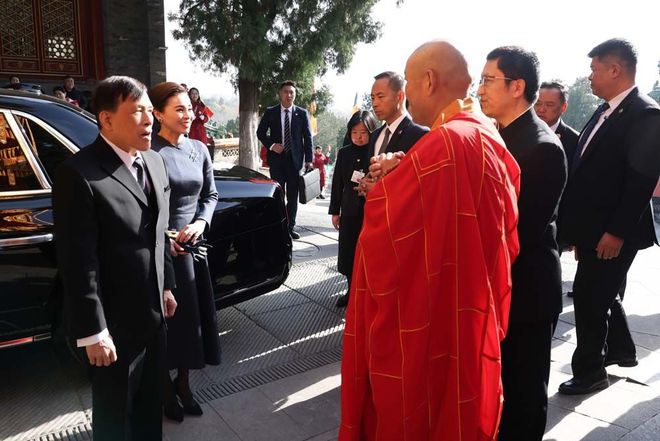 11月15日,泰国罗摩国王灵光寺供奉着释迦牟尼佛像以及其他珍贵的佛教文物,其中包括著名的“水晶佛牙舍利”。该文物曾两次从中国临时借给泰国用于大型庆祝活动。第一次是在2012年底庆祝拉玛九世国王普密蓬·阿杜德75岁生日。第二届是去年夏天为庆祝拉玛十世国王黄道六年的到来和中泰建交50周年而举办的。泰国媒体报道称,这些借展活动体现了泰中两国在佛教文物方面的互信与合作。国王此次参拜寺庙是一次新的访问,也是贡礼的延续,进一步加深了两国关系。泰国国王和王后首次进入恩通殿瞻仰沙基像阿牟尼佛。他们在祭坛上摆上金银树、鲜花、香烛,烧香礼拜。整个过程庄严肃穆,表现出对佛教的虔诚。随后,夫妇俩来到大塔下层,敬拜佛骨灰和三尊佛像。该场景显示,国王和王后点燃香火时,泰国侍从跪在大厅两侧。这也是国家的礼貌所要求的,必须对王室成员保持绝对的尊重。 73岁的泰国国王经常跪下接受别人的祈祷,但面对著名的僧侣时,他也必须下跪。这也体现了泰国“先跪后讲王”的民族信仰。据说泰国国王和王后分别获得了镶嵌红宝石的药师如来和观世音菩萨的雕像。当苏提达到达寺庙时,她仍然像前夕一样端庄。河她当天选择了一件简单的连衣裙,配有蓝宝石耳环。苏提达优雅的身材在“领带连衣裙+收腰现代连衣裙”的混合风格中得到了充分的展现。黑色和灰色也能让你白皙的皮肤更加凸显,给人一种“白到发光”的感觉。 15日一早,苏提达陪同泰国国王来到天安门广场,并向人民英雄纪念碑敬献鲜花。当时他穿着一件名为“中国立领+西式礼服夹克”的黑色融合风格外套。一块黑色麂皮,估计有10多厘米长。高跟鞋也很引人注目。可能会让你的脚很累,但是却为你的整体造型增色不少。由于泰王太后诗丽吉去世后,泰国王室仍处于哀悼之中,苏提达访华期间的着装以黑色为主,但并不单调。在面料的颜色和剪裁上有很多创新。伴随着一系列令人眼花缭乱的珠宝和配饰方面,Suthida 每次亮相都充满新特色。值得注意的是,47岁的苏提达有一半中国血统,她的母亲也是中国人。她从小就接触中国文化,所以对中国文化很了解,这一点体现在她的穿着上。